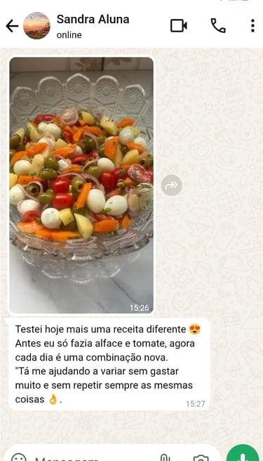 Sempre recebo elogios das minhas criações e, após 2 anos de estudos e testes, resolvi criar este material para ajudar outras pessoas que têm dificuldades em incluir a salada na rotina de forma prática e saborosa.